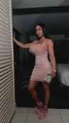 Gorgeous, super stretch, crystal and ostrich feather embellished dress. Fully lined with adjustable straps. Perfect for any night out or birthday dinner.