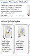 The Horizon 55 carry-on suitcase is made from Monogram Watercolor Multico canvas, Virgil Abloh's reimagining of the Monogram motif with a watercolor feel and a colorway inspired by his rainbow signature